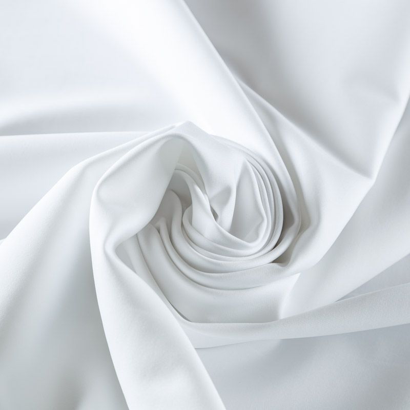 Итальянский плотный матовый бифлекс белого цвета. Ткань отлично тянется во всех направлениях, не прозрачный, одежда из него не сковывает движения. Хорошо впитывает влагу и быстро высыхает, не вызывет аллергии и раздражения. Подойдет для пошива купальников, пляжных и коктейльных платьев, топов, боди, леггинсов, велосипедок и лосин, костюмов фигуристов, танцоров, гимнастов.