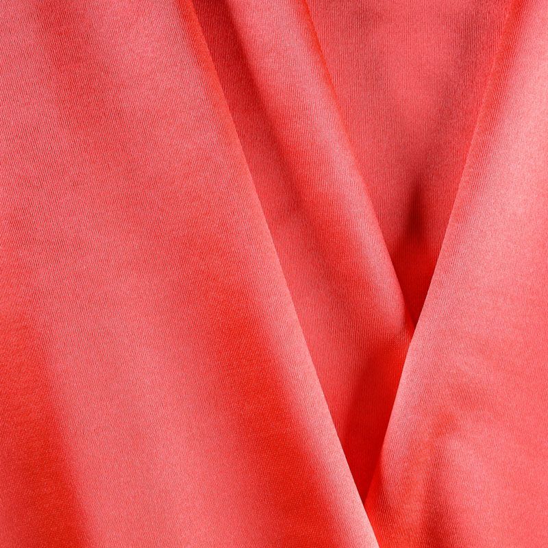 Лицевая сторона ткани с выраженным блеском, очень приятная на ощупь, "скользкая", как шелк. Ткань плотная, отлично тянется, одежда из него не сковывает движения. Хорошо впитывает влагу и быстро высыхает, не вызывет аллергии и раздражения. Подойдет для пошива купальников, парео, пляжных и коктейльных платьев, леггинсов и лосин, костюмов фигуристов, танцоров, гимнастов.