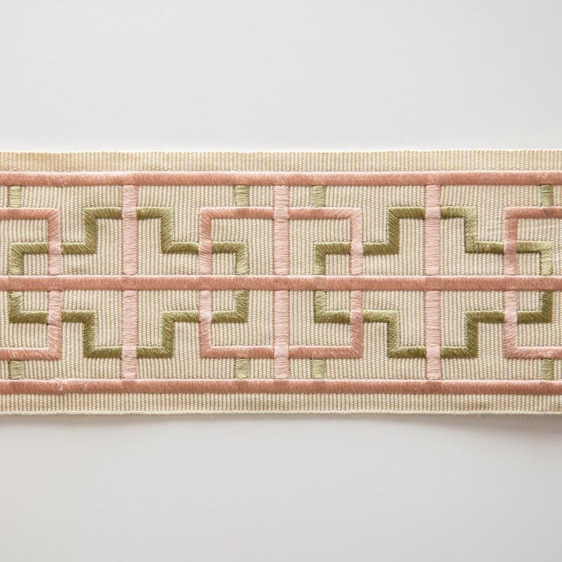 Бордюр жаккардовый 7 см 0000-357-104-012 молочным с зелено-розовым в Москве