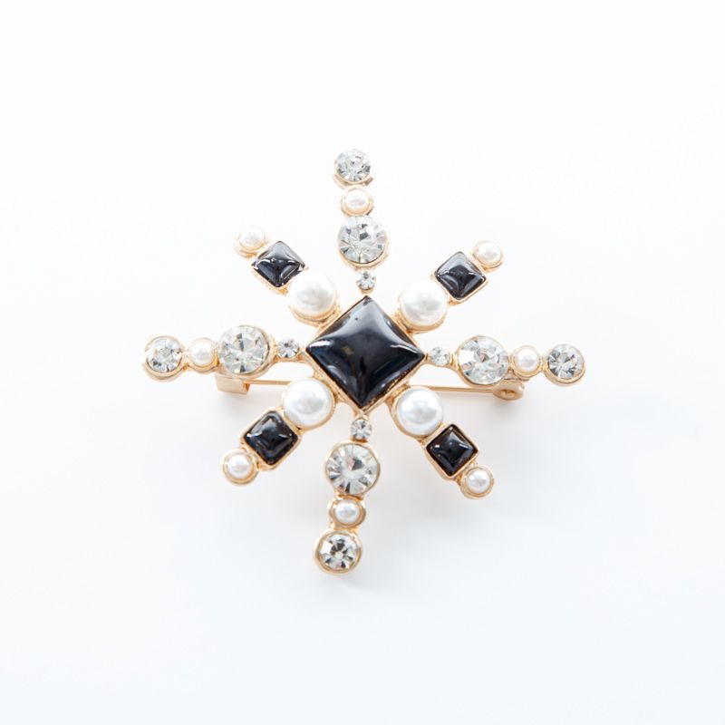Брошь декоративная 55х30 мм стразы ACS0477 золотой/черный в Москве
