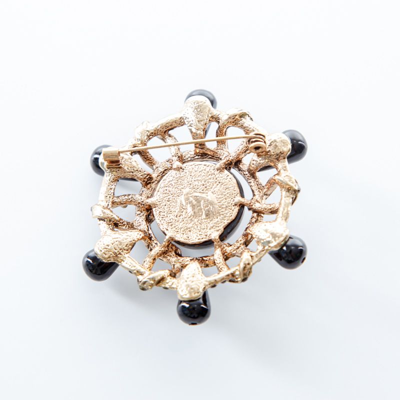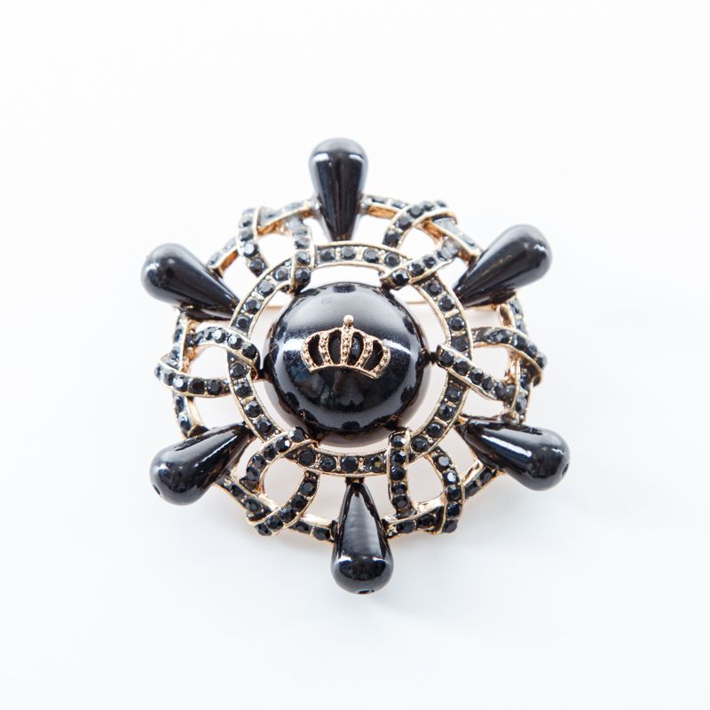 Брошь декоративная d60 мм стразы ACS0479 золотой/черный в Москве
