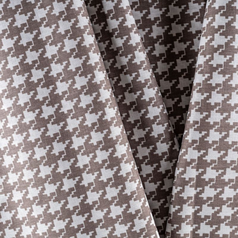 Плотная натуральная ткань с особым принципом переплетения нитей: крест-накрест. Имеет гладкую матовую поверхность чуть шероховатую на ощупь, не тянется, немного просвечивает. Прочная и стойкая к износу, надолго сохраняет яркость красок, не растягивается при стирке, практически не мнется. Рисунок, имитирующий "гусиную лапку" цвета какао на белом фоне, прекрасно подойдет для пошива постельного белья, изготовления пеленок, бортиков для кроватки, домашней одежды и других предметов интерьера.