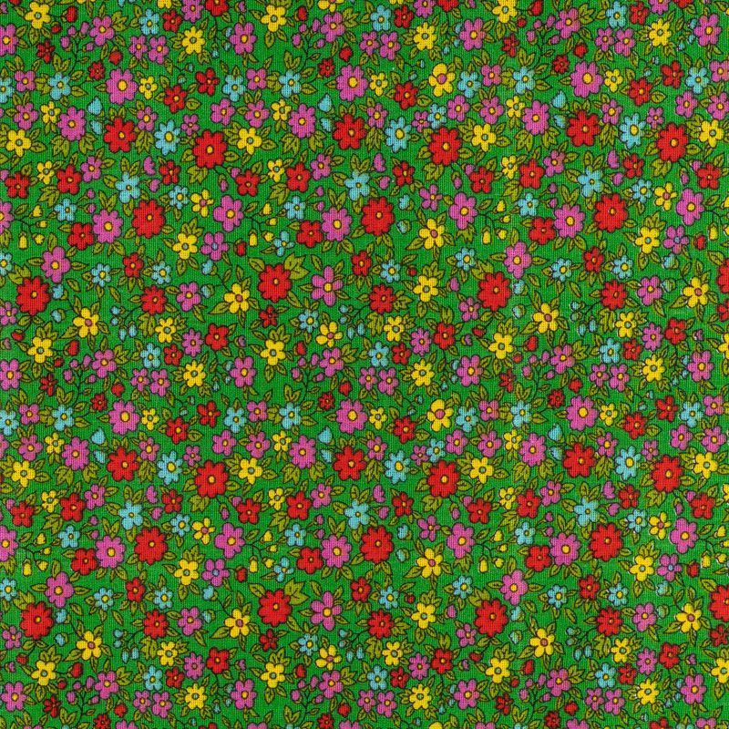 Плотная натуральная ткань с особым принципом переплетения нитей: крест-накрест. Имеет гладкую матовую поверхность, немного шероховатая на ощупь, не тянется, немного просвечивает. Прочная и стойкая к износу, надолго сохраняет яркость красок, практически не мнется. Мелкий цветочный принт на зеленом фоне прекрасно подойдет для пошива домашней одежды, халатов, фартуков, сарафанов и других предметов интерьера.
