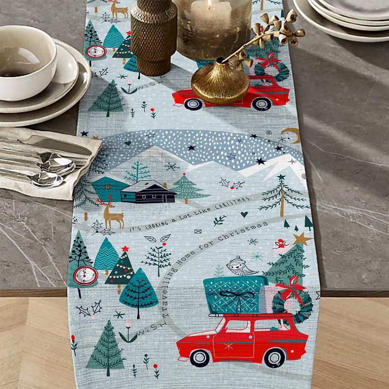Узкая плотная хлопковая ткань с твидовым плетением елочкой и ярким новогодним принтом. Идельно подойдет для украшения праздничного стола, итерьера, для пошива кухонных полотенец, салфеток, персонников, фартуков, прихваток и т.д.