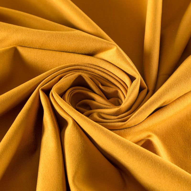 Плотное трикотажное полотно. Обе стороны ткани ровные, гладкие. Материал эластичный, имеет растяжимость по всем сторонам, хорошо держит форму, уютный, приятный к телу и удобный в носке. Применяется в пошиве платьев, юбок, костюмов, жакетов.