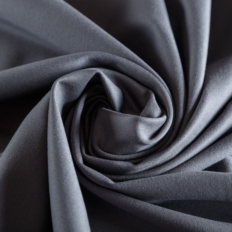 Трикотажное полотно средней плотности. Обе стороны ткани ровные, гладкие. Материал эластичный, упругий, имеет растяжимость по всем сторонам, хорошо держит форму, уютный, приятный к телу и удобный в носке. Подойдет для пошива платьев, юбок, костюмов, жакетов, брюк.