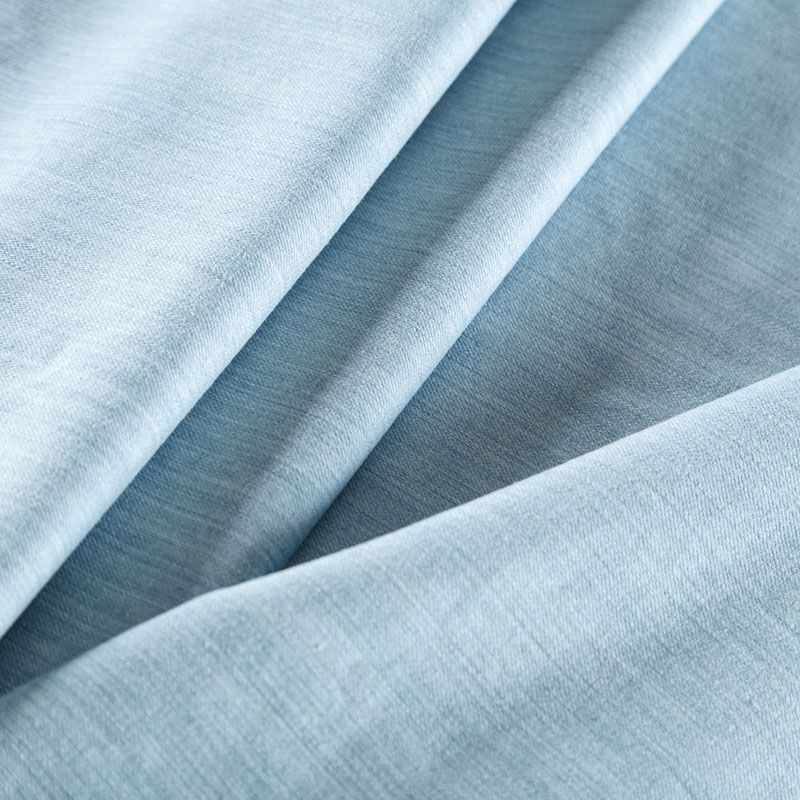 Поверхность ткани матовая, фактурная в диагональный рубчик. Материал имеет высокую плотность, при небольшой толщине, мягкий и приятный на ощупь, эластичный, обладает устойчивостью к истиранию и механическим повреждениям. Подойдет для пошива рубашек, сарафанов, платьев, юбок, шорт, брюк-джоггеров, лёгких курток и жакетов.