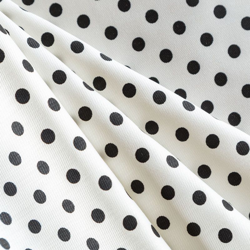 Итальянская джинсовая ткань молочного оттенка в черный горох. Материал имеет среднюю плотность, при небольшой толщине, мягкий и приятный на ощупь, эластичный, обладает устойчивостью к истиранию и механическим повреждениям. Подойдет для пошива рубашек, сарафанов, платьев, юбок, шорт, брюк-джоггеров, лёгких курток и жакетов.