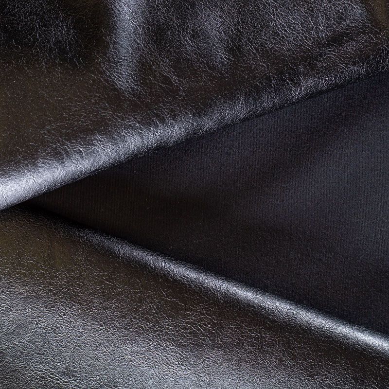 Искусственный материал, имитирующий натуральную кожу, на хлопковой основе с эластаном. Изнаночная сторона - черная. Поверхность имеет полуглянцевый блеск. Экокожа - это прочный и всегда актуальный материал. Она не боится влаги, прекрасно переносит перепады температуры, ее не продувает ветром. Она устойчива к износу и потрясающе выглядит в любых изделиях, не мнется, хорошо облегает фигуру. Подойдет для пошива куртки, костюма, платья, юбки, брюк, шорт, комбинезона, сумки, рюкзака.