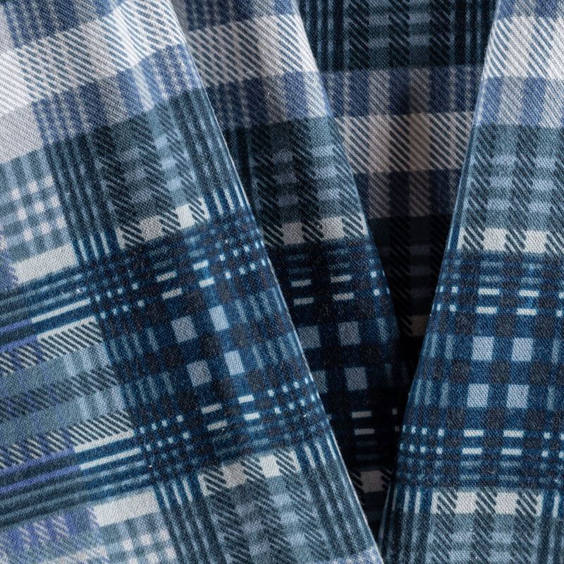 Износостойкий мягкий материал, не раздражает кожу, не садится, отлично впитывает влагу и хорошо удерживает тепло. На лицевой стороне мягкий ворс. Классический клетчатый принт с серо-голубых оттенках прекрасно подойдет для пошива домашней одежды, теплой пижамы, халата, рубашек различного фасона.
