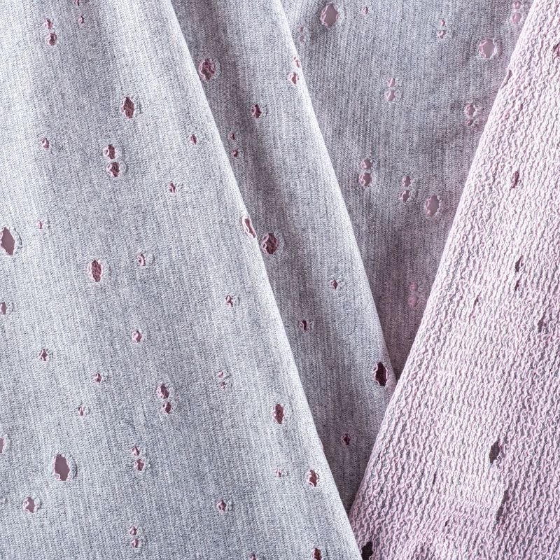 Итальянский плотный, но мягкий эластичный хлопковый трикотаж в стиле гранж. Лицевая сторона гладкая, без блеска, мелкой вязки светло-серого цвета. Изнанка – петля нежно-розового оттенка. Прекрасный вариант для пошива платьев и костюмов, легких толстовок, свитшотов, спортивной, детской и  домашней одежды.