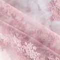 Итальянский гипюр с воздушным кружевным орнаментом, который соединяет прозрачная тонкая сетка розового оттенка. Вышивка выполнена вискозной не очень плотно, поэтому полотно тонкое, легкое, очень мягкое и пластичное, хорошо драпируется, приятное тактильно. С обеих сторон ткань украшена симметричными фестонами, что придает ей законченный и нарядный вид. Великолепно будет смотреться в нарядном вечернем, свадебном платье, платье на выпускной бал, в юбках, блузках, топах.