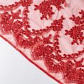 Вышивка на сетке насыщенного красного оттенка с флористическим узором. Полотно мягкое, легкое и пластичное, хорошо тянется. Сетка не жесткая, приятная к телу. Узор вышит мягкой пряжей, образуя красивую фактуру, имитирующую ручную вышивку, и оформлен кордовой нитью. С обеих сторон ткань украшена симметричными фестонами, что придает полотну законченный и нарядный вид. Великолепно будет смотреться в нарядном вечернем платье, платье на выпускной бал, в блузках, топах. Набирается для изделя объемом.