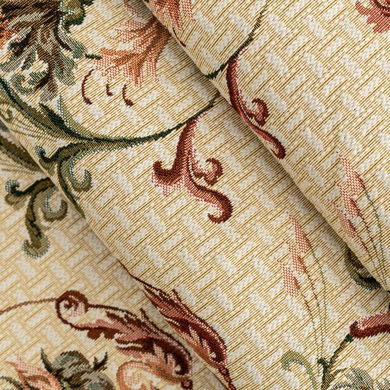 Гобелен представляет собой ткань, выполненную  перекрестным плетением нитей с одномоментным созданием сюжетной или орнаментальной композиции. Это плотный материал высокую прочность и износостойкость. Гобелен используют для пошива плотных светонепроницаемых штор, декоративного домашнего текстиля и аксессуаров, в мебельном производстве для обивки мебели. Так же применяется в рукоделии: модные кошельки, сумочки, пояса и другие аксессуары и при изготовлении дизайнерской одежды. На спокойном песочном фоне цветное разнообразие фантазийных колокольчиков.