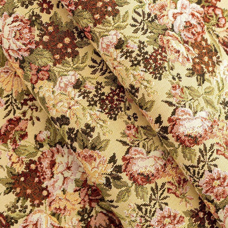 Гобелен представляет собой ткань, выполненную перекрестным плетением нитей с одномоментным созданием сюжетной или орнаментальной композиции. Это плотный материал высокую прочность и износостойкость. Гобелен используют для пошива плотных светонепроницаемых штор, декоративного домашнего текстиля и аксессуаров, в мебельном производстве для обивки мебели. Так же применяется в рукоделии: модные кошельки, сумочки, пояса и другие аксессуары и при изготовлении дизайнерской одежды. Очень летний принт - букеты из садовых и полевых цветов на спокойном фоне натурального песочного оттенка.