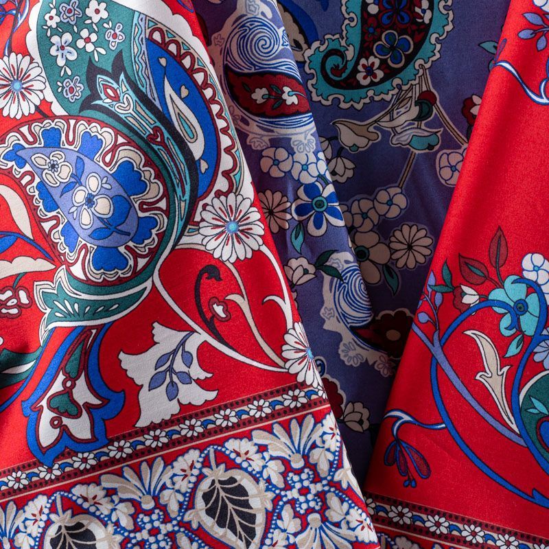 Плательно-рубашечный купонный хлопок с растительным узором в красно-синих тонах - хит этого летнего сезона. Ткань имеет плотное переплетение, матовую гладкую поверхность, хорошо держит форму, не прозрачная. Подойдет для пошива рубашек, платья-рубашки, юбки, сарафана, туники, домашней одежды.