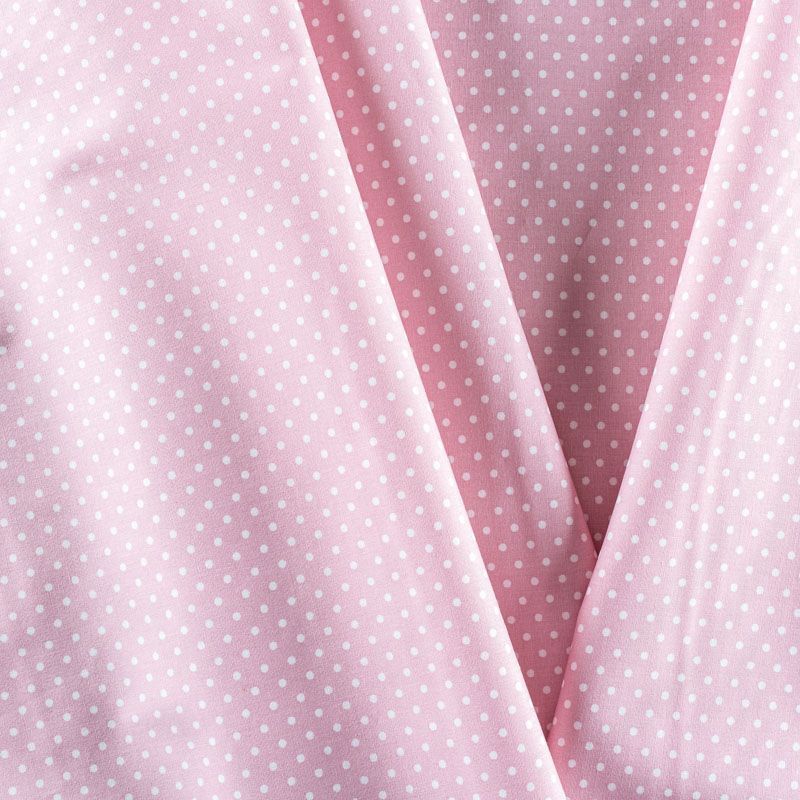 Плательно-блузочная ткань из натурального хлопка в мелкий горошек. Ткань легкая, тонкая, хорошо "дышит", мягкая, не прозрачная, немного тянется за счет эластана в составе. Подойдет для пошива летнего платья, летящей юбки, блузы, сарафана, комбинезона или рубашки.