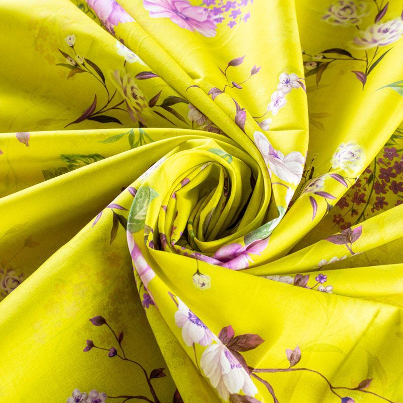 Плательно-рубашечный хлопок сложного красивого желтого оттенка с элегантным цветочным принтом. Ткань очень лёгкая, воздушная, тонкая, похожа на батист, немного прозрачная, поверхность матовая, гладкая, приятная к телу, хорошо драпируется. Прекрасно подойдет блузы, платья-рубашки, летнего сарафана, туники.