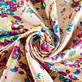 Плательно-рубашечная ткань из натурального хлопка с ярким цветочным принтом. Ткань легкая, тонкая, хорошо "дышит", слегка держит форму, не сухая, не прозрачная. Подойдет для пошива летнего платья, летящей юбки, блузы, сарафана, комбинезона или рубашки, а также для домашней одежды.