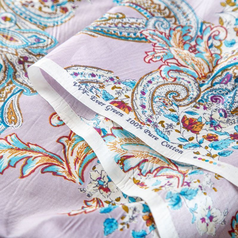 Плательно-рубашечная ткань из натурального хлопка с узором пейсли. Ткань легкая, тонкая, хорошо "дышит", слегка держит форму, не сухая, не прозрачная. Подойдет для пошива летнего платья, летящей юбки, блузы, сарафана, комбинезона или рубашки, а также для домашней одежды.