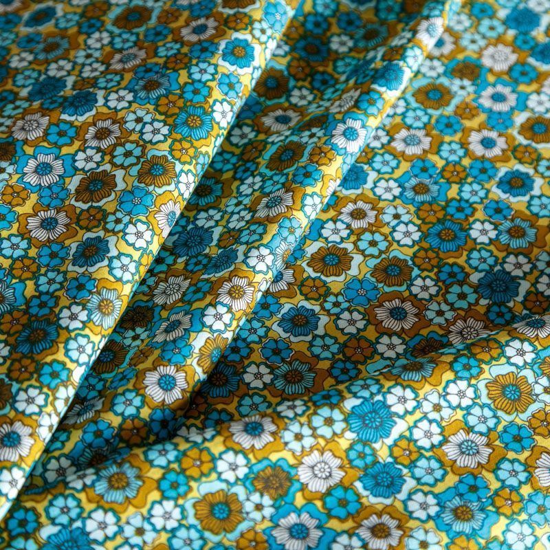 Плательно-рубашечная ткань из натурального хлопка в мелкий абстрактно-цветочный рисунок. Ткань легкая, тонкая, хорошо "дышит", слегка держит форму, не сухая, не прозрачная. Подойдет для пошива летнего платья, летящей юбки, блузы, сарафана, комбинезона или рубашки, а также для домашней одежды.