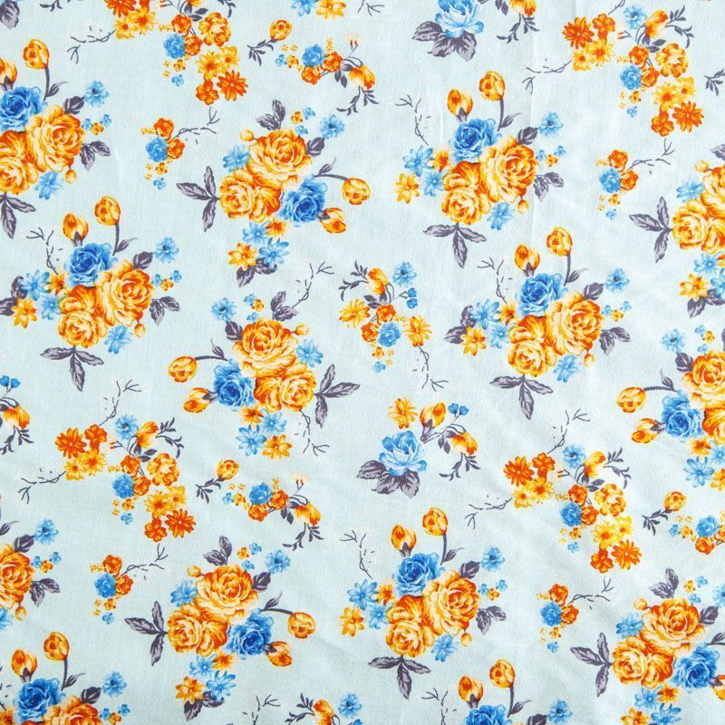 Плательно-рубашечная ткань из натурального хлопка с ярким цветочным принтом. Ткань легкая, тонкая, хорошо "дышит", слегка держит форму, не сухая, не прозрачная. Подойдет для пошива летнего платья, летящей юбки, блузы, сарафана, комбинезона или рубашки, а также для домашней одежды.