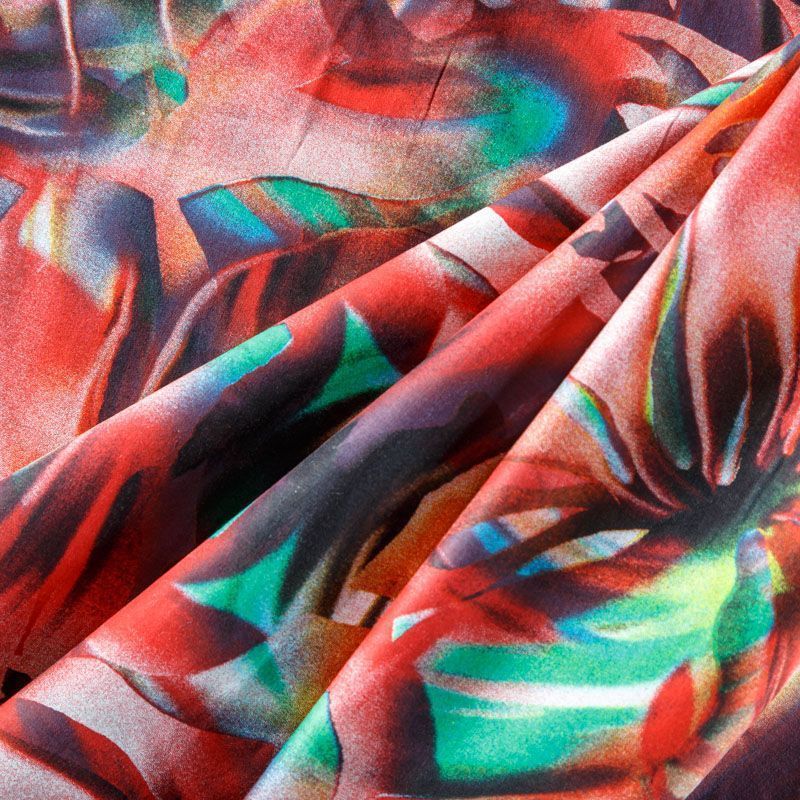 Итальянская плательно-блузочная ткань из натурального хлопка с крупным флористическим принтом. Ткань легкая, тонкая, хорошо "дышит", мягкая. Подойдет для пошива летнего платья, летящей юбки, блузы, сарафана или рубашки.