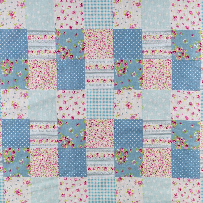 Ткань из натурального хлопка с рисунком в виде сшитых между собой разных лоскутков (печворк). Размер клетки 5*5 см. Ткань легкая, хорошо "дышит", мягкая, слегка прозрачная. Подойдет для пошива белья, рукоделия, печворка, изготовления предметов интерьера.