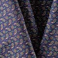 Рубашечно-плательный натуральный хлопок с узором пейсли в зеленых и терракотовых тонах на насыщенном чернильном фоне. Ткань имеет плотное переплетение, матовую гладкую поверхность, хорошо держит форму, не прозрачная. Подойдет для пошива мужских рубашек, платья-рубашки, юбки, сарафана, туники.