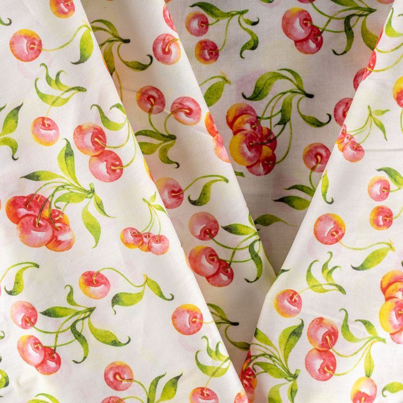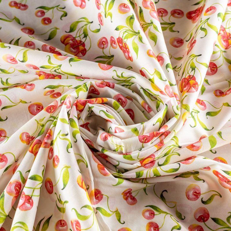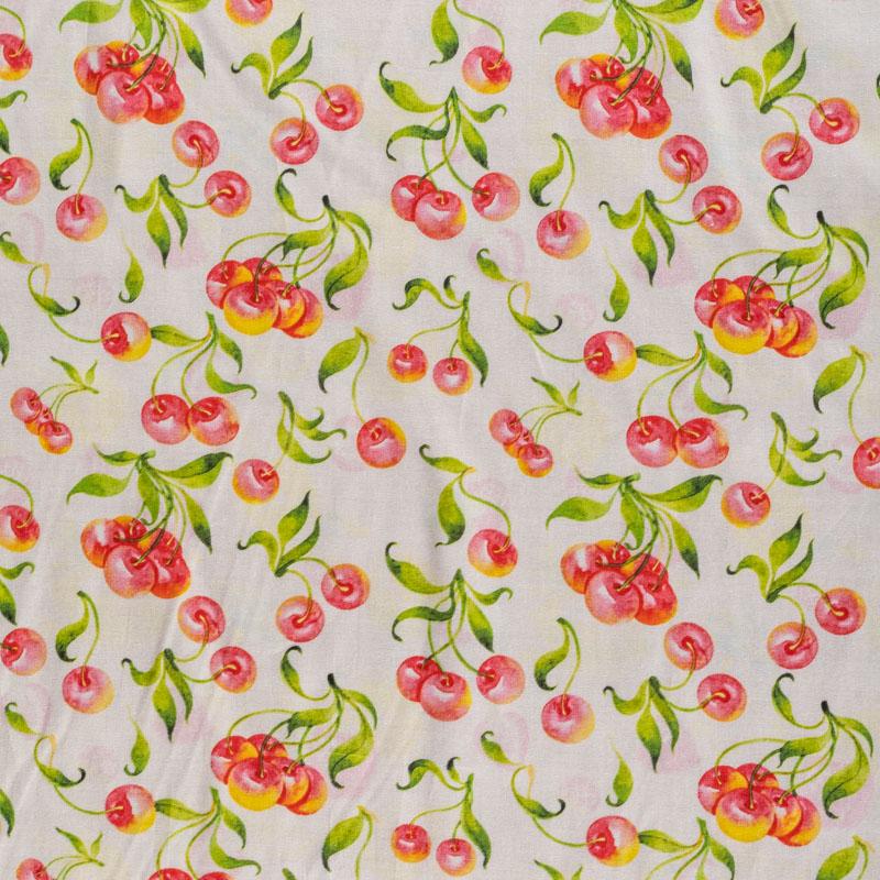 Итальянский натуральный хлопок с милыми вишенками в пастельных тонах. Ткань легкая, тонкая, хорошо "дышит", мягкая, слегка прозрачная, по плотности напоминает батист. Подойдет для пошива домашней одежды, детских летних платьев, песочников, юбки, сарафана или рубашки, а также для для пошива постельных принадлежностей, подушек, покрывал, скрапбукинга, корзин и других видов творчества.