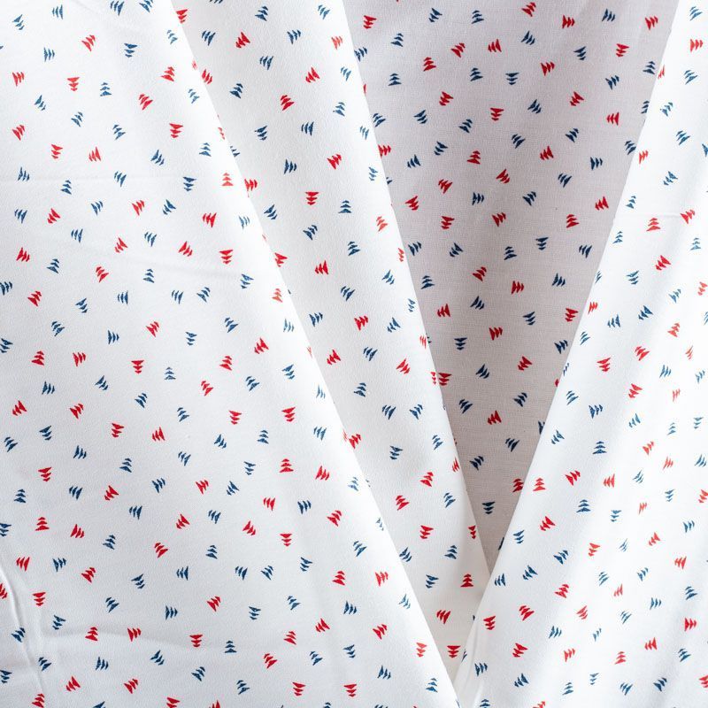 Плательно-рубашечный хлопок с мелким геометрическим рисунком. Ткань мягкая, лёгкая, непрозрачная, пластичная и приятная к телу, хорошо драпируется, имеет гладкую матовую поверхность и сатиновое плетение. Прекрасно подойдет как для пошива платья-рубашки, сарафана, платьев различных фасонов, туники, топа, летнего костюма, комбинезона, мужской и детской одежды.