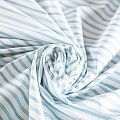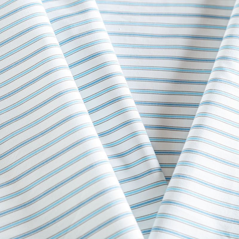 Плательно-рубашечный хлопок в белого цвета освежает серо-голубая полоска. Ткань мягкая, лёгкая, непрозрачная, пластичная и приятная к телу, хорошо драпируется, имеет гладкую матовую поверхность и сатиновое плетение. Прекрасно подойдет как для пошива платья-рубашки, сарафана, платьев различных фасонов, туники, топа, летнего костюма, комбинезона, мужкой и детской одежды.