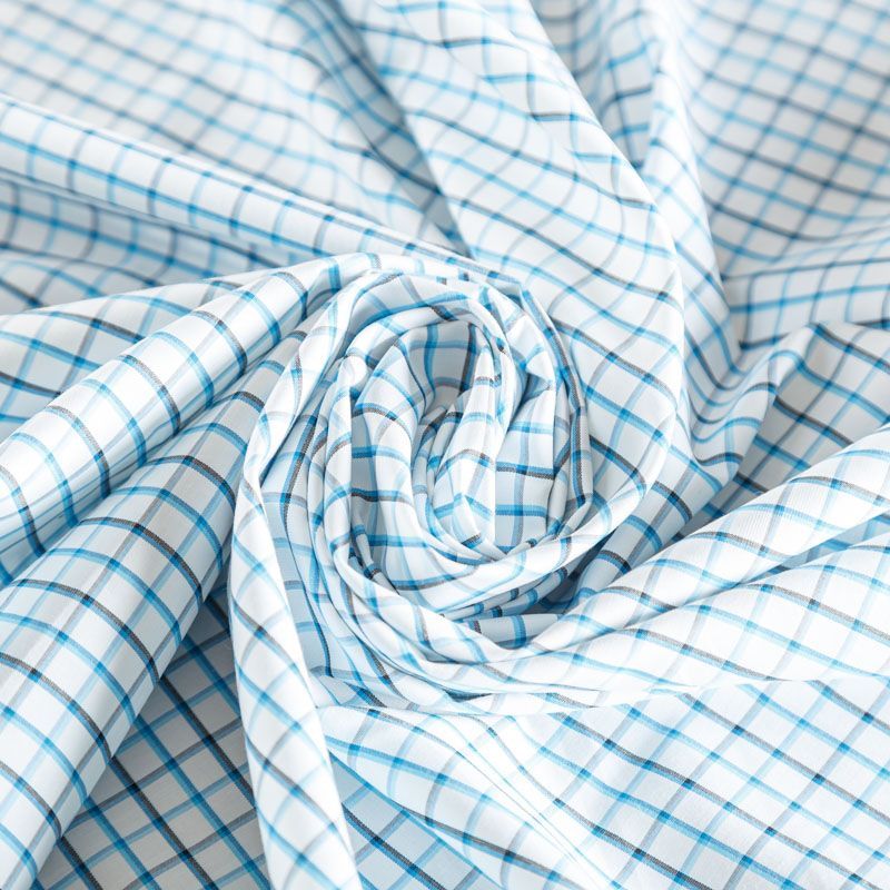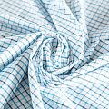 Плательно-рубашечный хлопок в белого цвета в сине-голубую клеточку. Ткань мягкая, лёгкая, непрозрачная, пластичная и приятная к телу, хорошо драпируется, имеет гладкую матовую поверхность и сатиновое плетение. Прекрасно подойдет как для пошива платья-рубашки, сарафана, платьев различных фасонов, туники, топа, летнего костюма, комбинезона, мужкой и детской одежды.