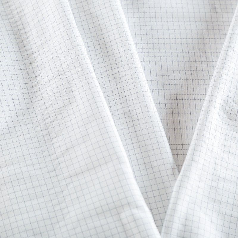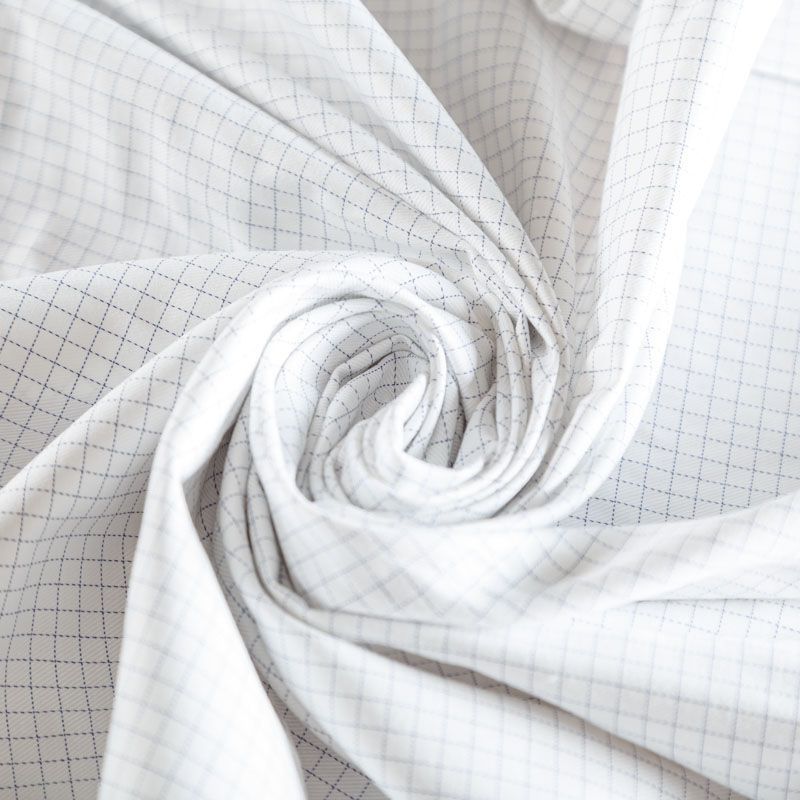Плательно-рубашечный хлопок в белого цвета в мелкую клетку. Ткань мягкая, лёгкая, непрозрачная, пластичная и приятная к телу, хорошо драпируется, имеет гладкую матовую поверхность и сатиновое плетение. Прекрасно подойдет как для пошива платья-рубашки, сарафана, платьев различных фасонов, туники, топа, летнего костюма, комбинезона, мужкой и детской одежды.