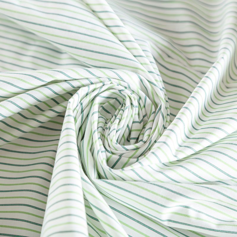 Плательно-рубашечный хлопок в белого цвета освежает салатово-зеленая полоска. Ткань мягкая, лёгкая, непрозрачная, пластичная и приятная к телу, хорошо драпируется, имеет гладкую матовую поверхность и сатиновое плетение. Прекрасно подойдет как для пошива платья-рубашки, сарафана, платьев различных фасонов, туники, топа, летнего костюма, комбинезона, мужкой и детской одежды.