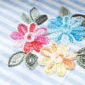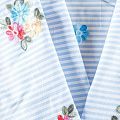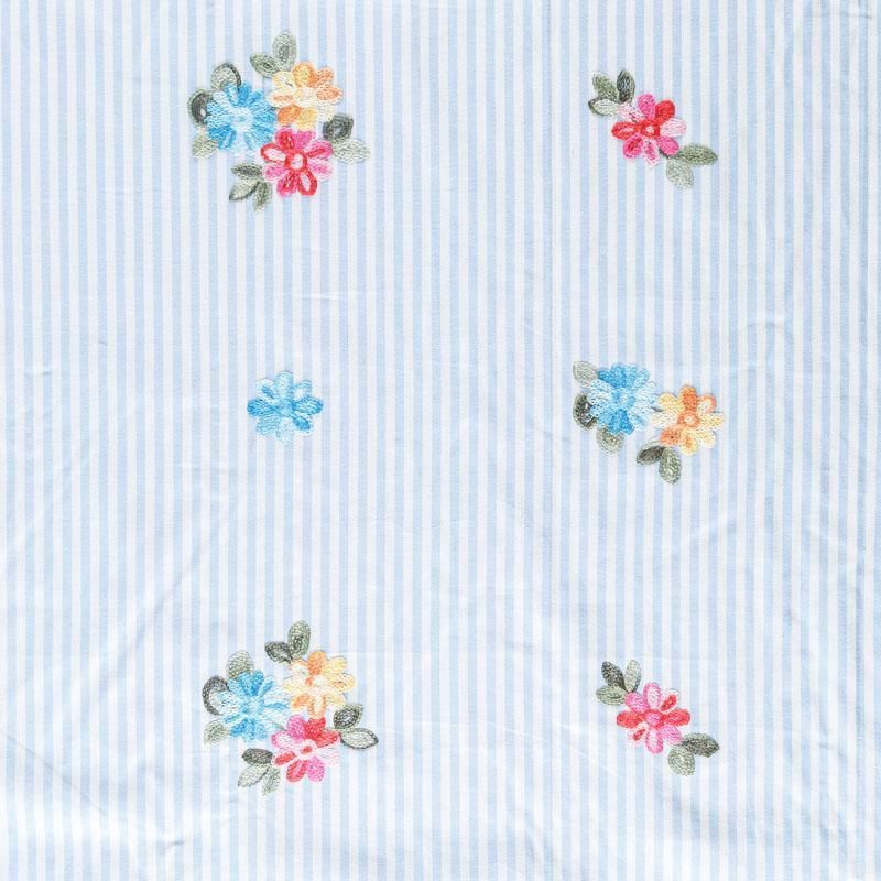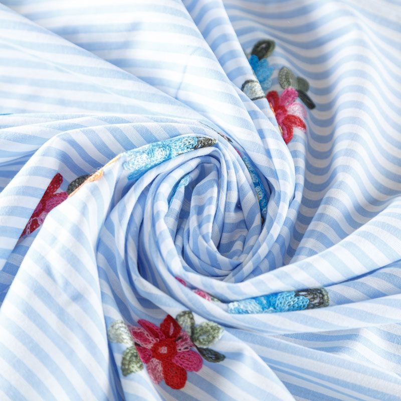 Плательно-блузочный хлопок в бело-голубую полоску декорирован яркой цветочной вышивкой. Полотно средней плотности, слегка просвечивает, очень нежное и пластичное, держит форму. Материал отлично драпируется, формируя мягкие складки. Подойдет для прямых, полуприлегающих, расклешенных моделей платьев, сарафанов, а также юбки, туники, платье-рубашки.