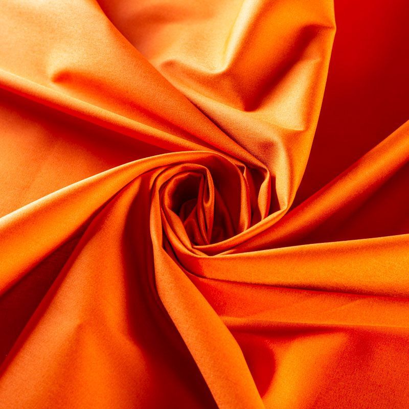 Итальянский коттон средней плотности оранжевого оттенка, мягкий, приятный на ощупь, эластичный, держит форму, смотрится красиво. Подойдет для пошива костюма, жакета, юбки, платья и других изделий на теплый и прохладный сезоны.