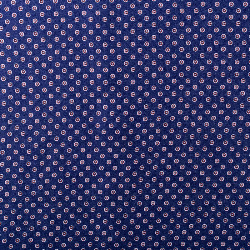 Натуральная вискозная ткань темно-синего оттенка с геометрическим мелким принтом. Легкая, хорошо тянется, драпируется струящимися складками, приятная и комфортная в носке. Материал слегка мнется имеет креповую фактуру. Идеально подходит для пошива  платьев, юбок, блуз, комбинезонов.