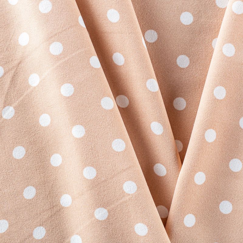 Плательный креп с принтом в горох. Ткань средней плотности, не толстая, пластичная, поверхность полотна матовая, с характерной мелкозернистой фактурой, прочная, хорошо драпирующаяся. Превосходно подойдет для пошива стильного костюма, юбки, платья, комбинезона, топа, брюк.