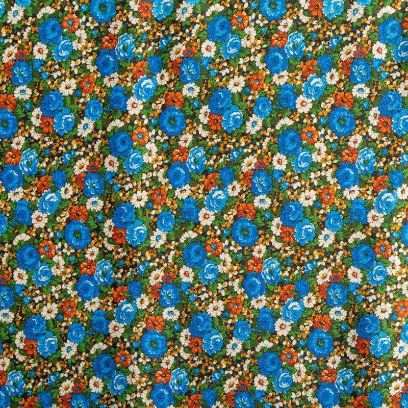Итальянский креп плательной плотности с мелкоцветным ярким принтом. Поверхность матовая и фактурная, ткань малосминаемая, тянется за счет эластана в составе, красиво драпируется, струится и дает объемную складку, не просвечивает.Идеально подойдет для шикарного платья, блузы, юбки, комбинезона, брюк свободного кроя.