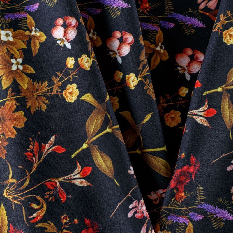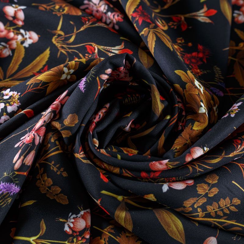 Плательный креп средней плотности, ткань не толстая, пластичная, поверхность полотна матовая, с характерной мелкозернистой фактурой, прочная, практически не мнется, хорошо драпируется, тянется за счет эластана в составе. Превосходно подойдет для пошива свободного костюма, юбки, платья, туники, лонгслива, комбинезона, топа, брюк.
