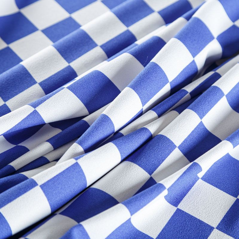 Плательный креп с геометрическим принтом. Ткань средней плотности, не толстая, пластичная, поверхность полотна матовая, с характерной мелкозернистой фактурой, прочная, практически не мнется, хорошо драпируется. Превосходно подойдет для пошива стильного костюма, юбки, платья, комбинезона, топа, брюк.
