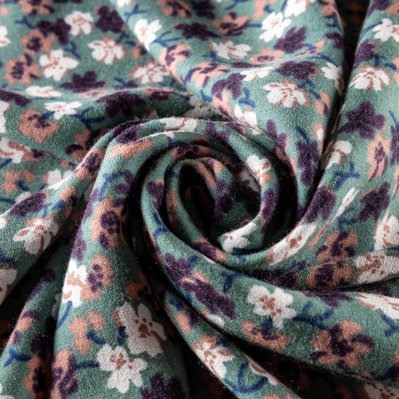Плательно-блузочная ткань из вискозы с креповым плетением. Ткань средней плотности, имеет зернистую фактуру и матовую поверхность, практически не просвечивает, пластичная, хорошо драпируется мягкими складками, струится. Подходит для пошива платья и сарафана, юбки, блузки, туники, топа, комбинезона.