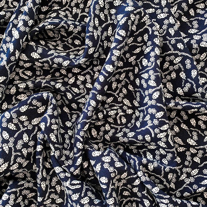 Креп К36-070 темно-синий принтованный