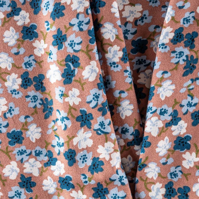 Плательно-блузочная ткань из вискозы с креповым плетением. Ткань средней плотности, имеет зернистую фактуру и матовую поверхность, практически не просвечивает, пластичная, хорошо драпируется мягкими складками, струится. Подходит для пошива платья и сарафана, юбки, блузки, туники, топа, комбинезона.