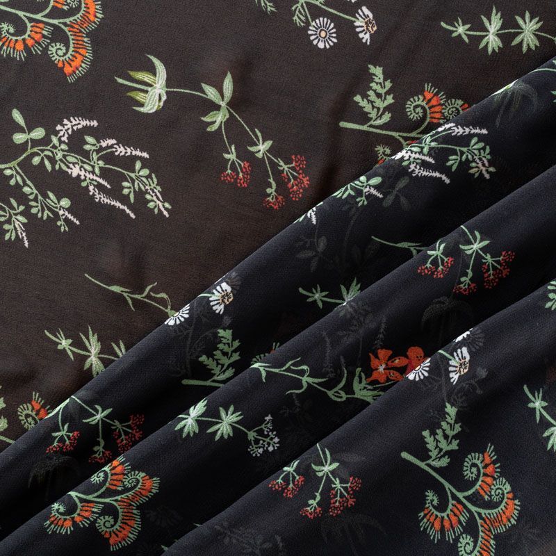 Легкий, воздушный, мягкий и нежный креп-шифон, прекрасно драпируется, приятен к телу, полупрозрачный, может потребоваться подклад. Поверхность матовая, без блеска, фактурная. Идеален для нежных платьев летящих силуэтов, топов, туник, блузок, юбок с роскошными драпировками и воланами.