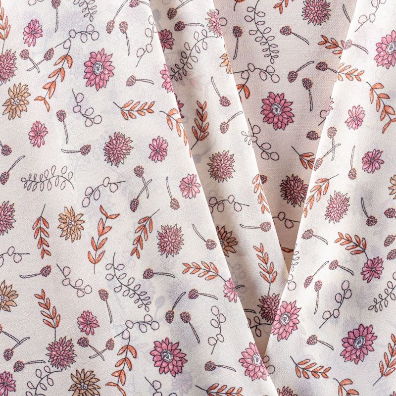 Креп-шифон 027-01283 молочный принтованный