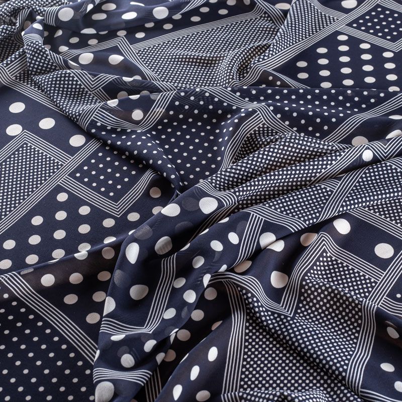 Креп-шифон 027-01416 темно-синий принтованный