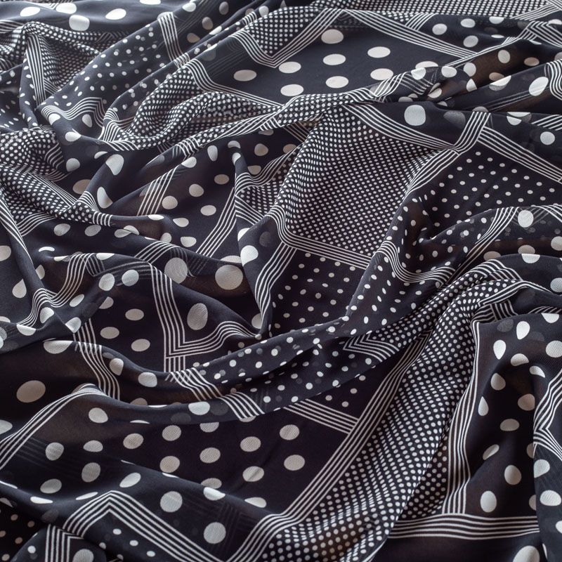 Креп-шифон 027-01417 черный принтованный