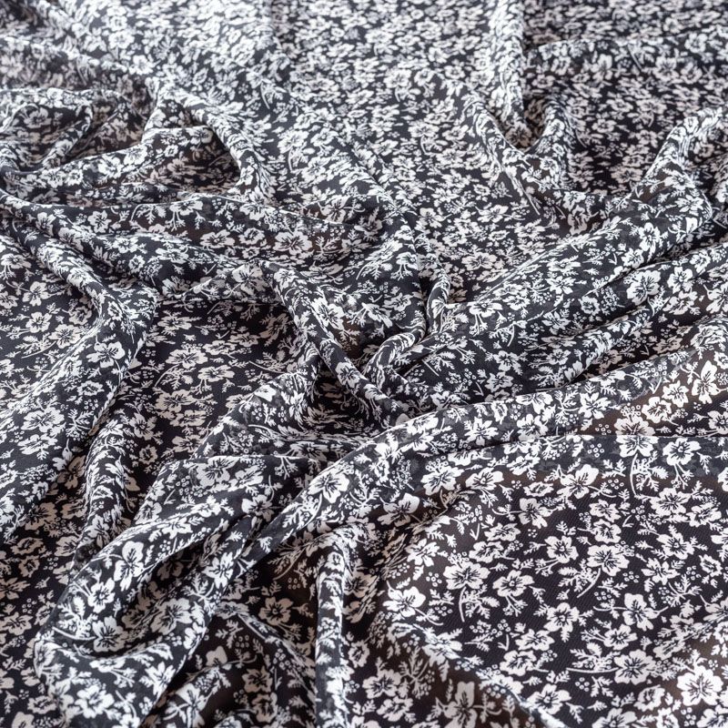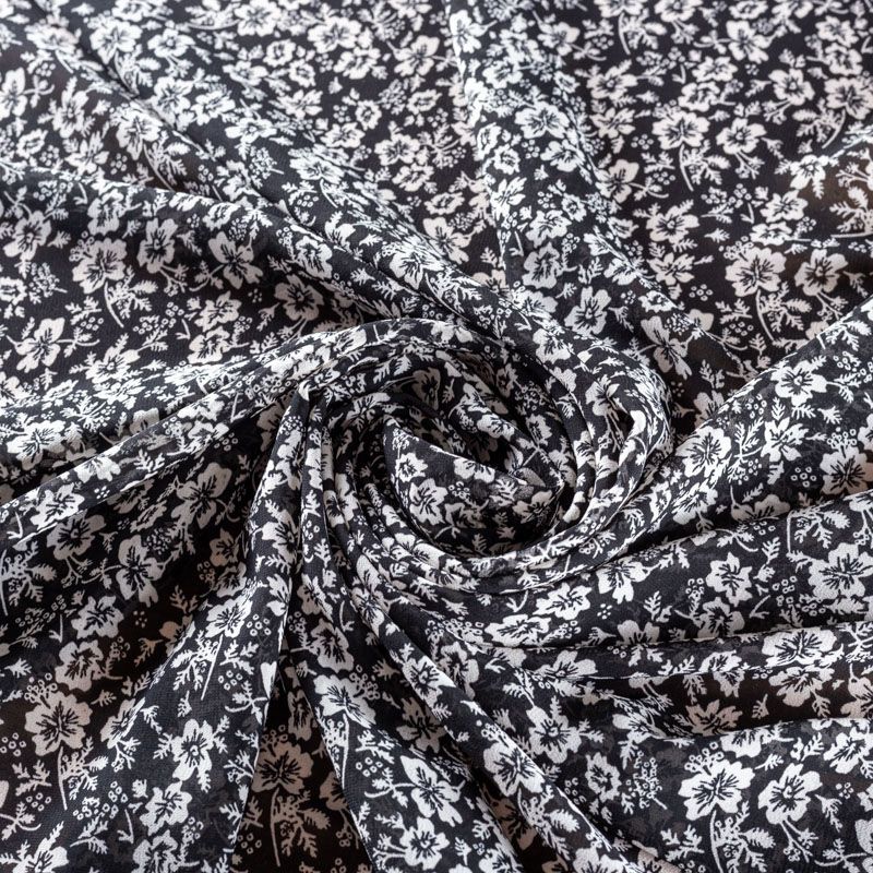 Креп-шифон 027-01437 черный принтованный